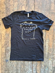 This time we've used super nice Bella Canvas 3001CVC 90/10 crew T's, in Black Heather. Discharge printed for softness and durability.