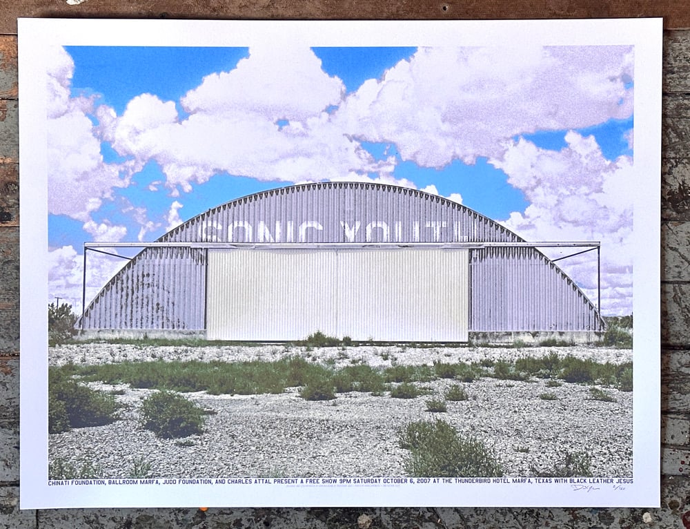 Commissioned by Ballroom Marfa and The Judd Foundation for Sonic Youth’s now-legendary 2007 performance in Marfa TX, this print was scarce to begin with and has long been unavailable despite years of queries and requests.